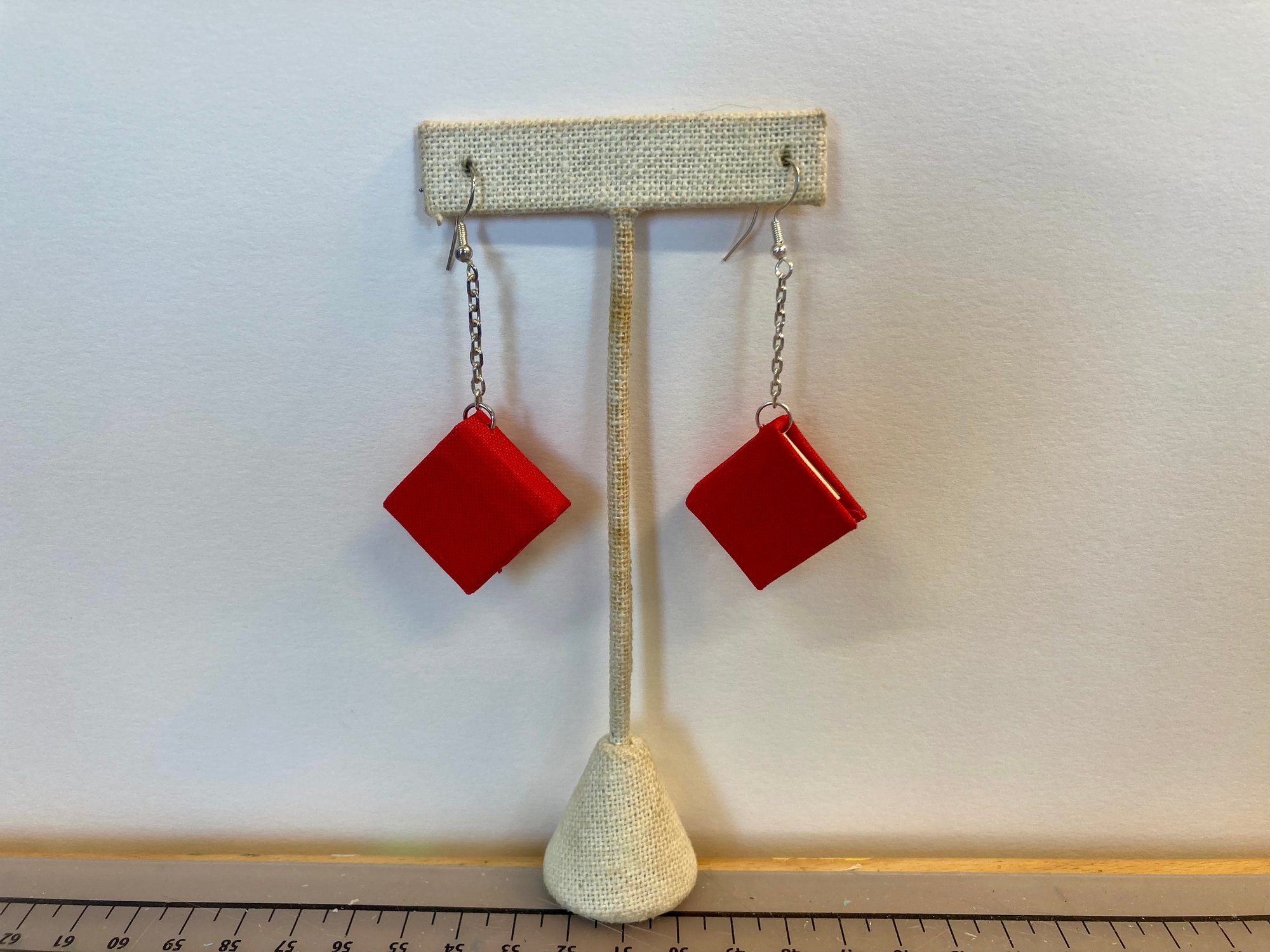 Lightweight tiny book earrings made out of book cloth. Sterling silver. Writable and readable.