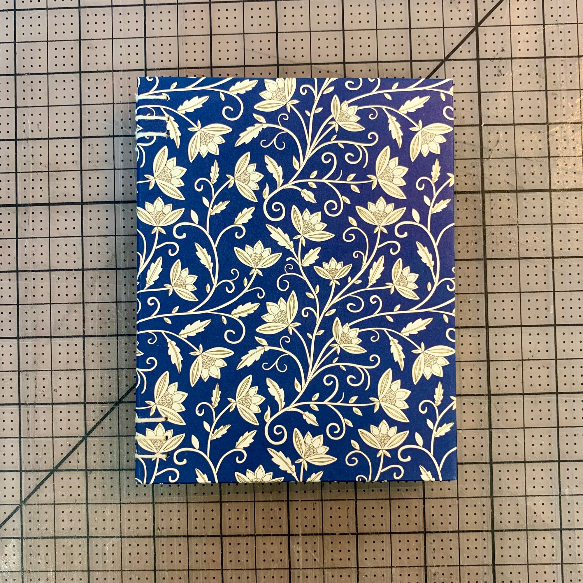 Dark Blue Floral Book- Coptic and Decorative Stitch